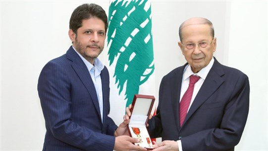 وكتب: ”شرفني اليوم فخامة رئيس الجمهورية العماد ميشال عون بمنحي وسام الارز الوطني من رتبة ظابط“، وختم: ”شكراً فخامة الأب“.