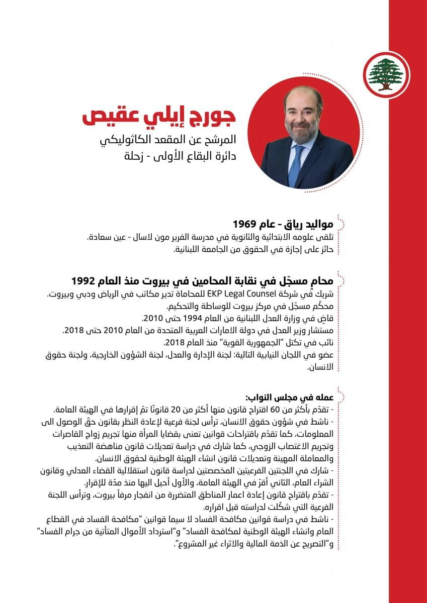 إليكم السير الذاتية لمرشحي “القوات اللبنانية” في كافة الدوائر الانتخابية.