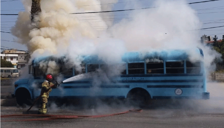 أخمدت عناصر من الدفاع المدني اليوم الثلثاء، حريقاً شب داخل حافلة مخصصة لنقل الطلاب عند مدخل صور الشمالي.