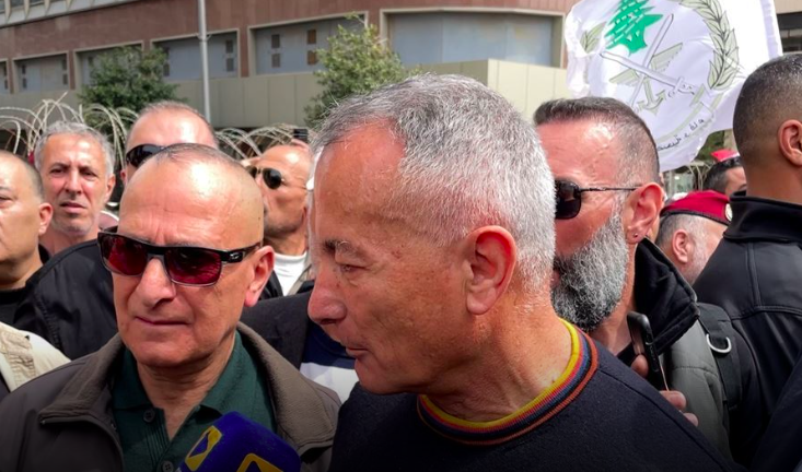طالب العميد المتقاعد شامل روكز خلال الإعتصام الذي ينفذه العسكريون المتقاعدون في ساحة رياض الصلح منذ صباح اليوم الأربعاء بتصحيح أجورهم في ظل إرتفاع سعر صرف الدولار وبالحصول على كامل حقوقهم بكرامة.