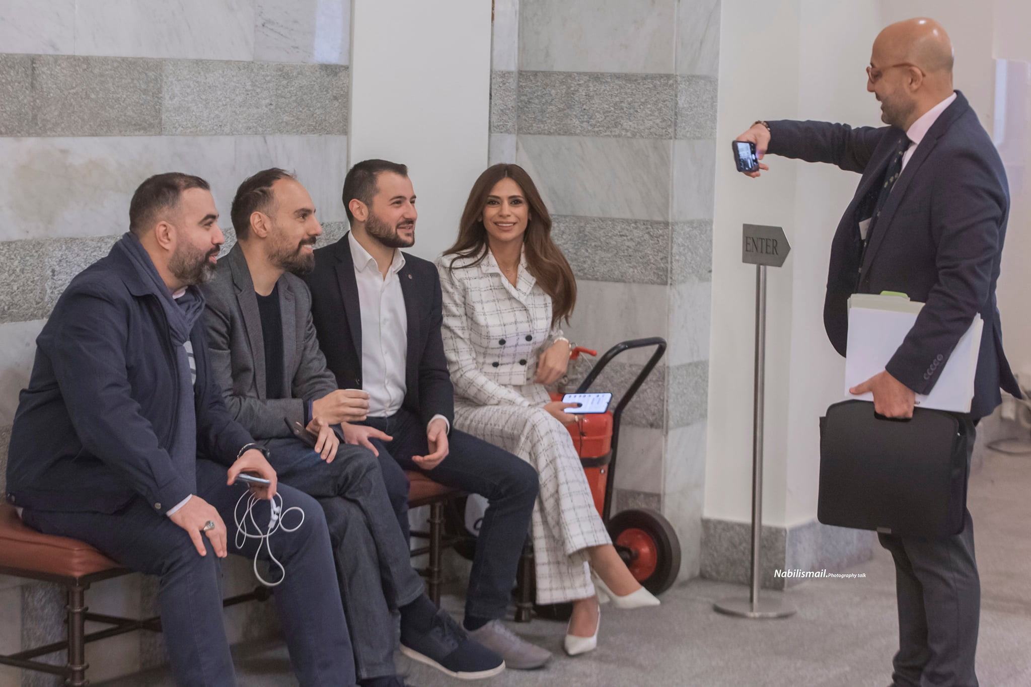 نشر المصوّر نبيل إسماعيل عبر صفحته على “فيسبوك” صوراً تظهر قيام وزير البيئة، ناصر ياسين، بالتقاط صورٍ بهاتفه للإعلاميين المتواجدين في السراي الحكومي أثناء انتظار بدء جلسة مجلس الوزراء اليوم.