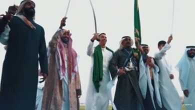 -  بلا سياسة  بالثوب السعودي والسيف.. فيديو لرونالدو يؤدي العرضة في يوم التأسيساحتفل النجم السعودي كريستيانو رونالدو لاعب نادي النصر، الأربعاء، بيوم التأسيس في المملكة حاملا السيف ومرتديا الثوب السعودي. ونشر حساب… إقرأ المزيد