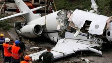سقوط طائرة وتحطمها بين المنازل (فيديو)